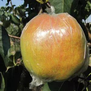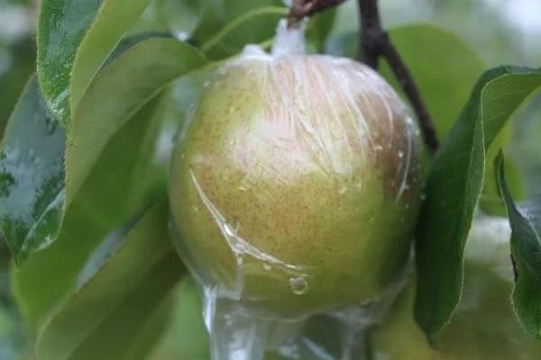 玉露香梨盛花期过后35~40天,即疏果结束后,就要给幼果套上果袋,这样既可以增加果面的洁净度,又可以防止农药污染,减轻鸟害。果袋采用透明塑料袋,袋口有一小段柔软的铁丝,这样套袋后便于密封和固定。