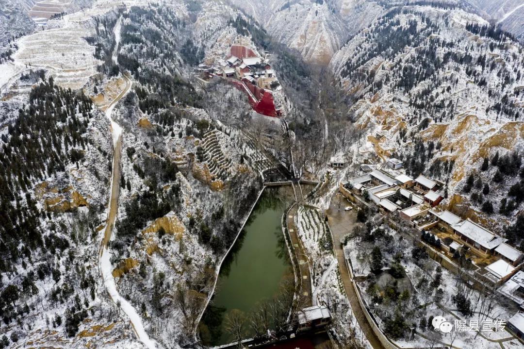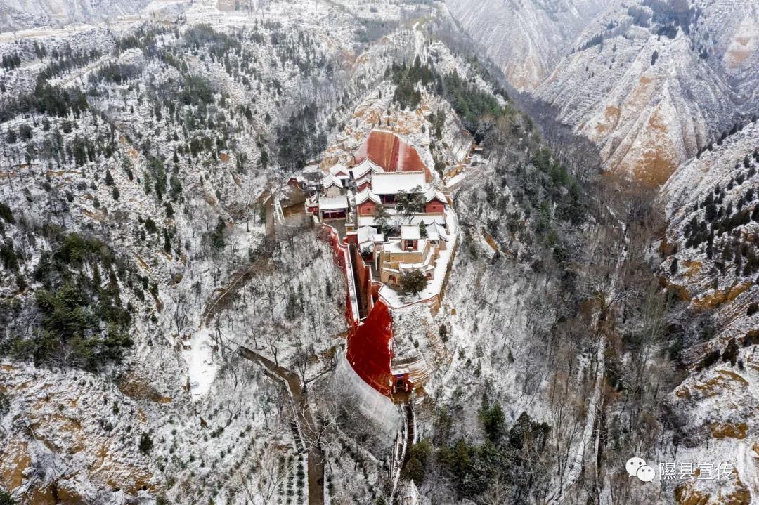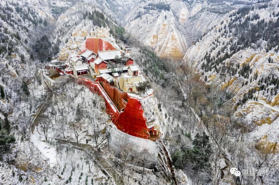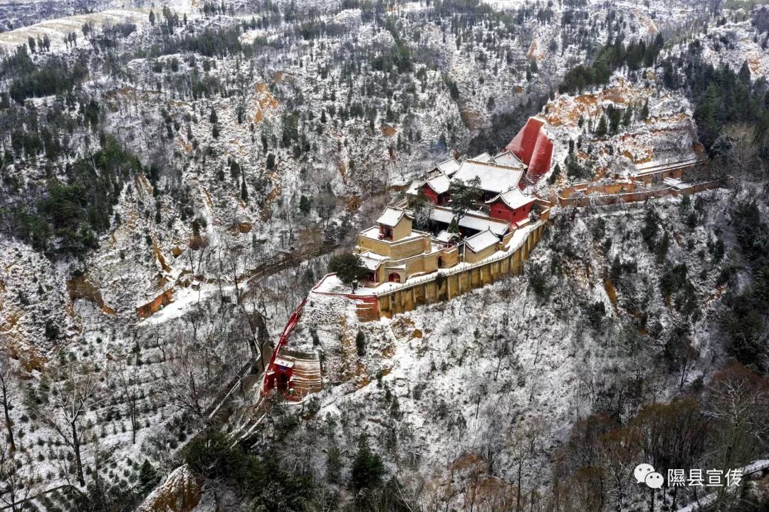 近日,一场大雪过后,隰县大地银装素裹,小西天犹如镶嵌在黄土高原上色彩斑斓“红珊瑚”。