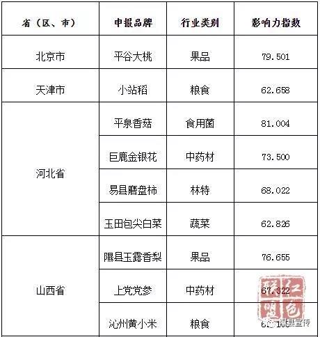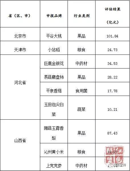 表1:中国农业品牌目录2019农产品区域公用品牌(第一批)价值评估榜单